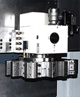 在E型刀塔基礎上具備了鉆攻銑等動力刀 具功能,配合主軸的C軸控制,使機床具 備車、鉆、攻、銑一體功能,可減少工 件上下料時間,減少重復定位誤差,節約物流空間。
