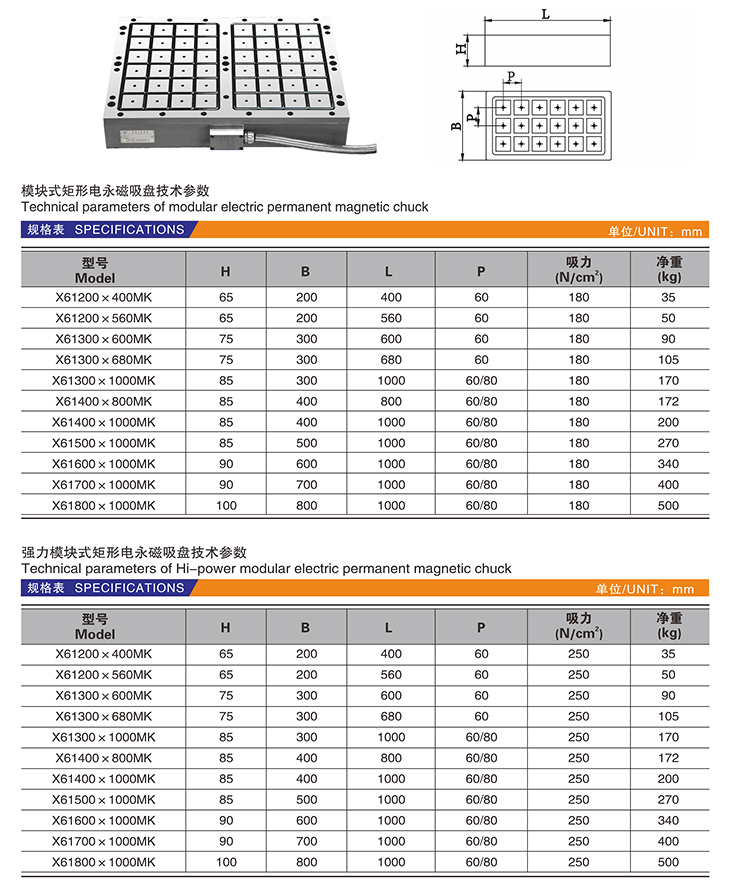 X61-MK 模塊式矩形電永磁吸盤